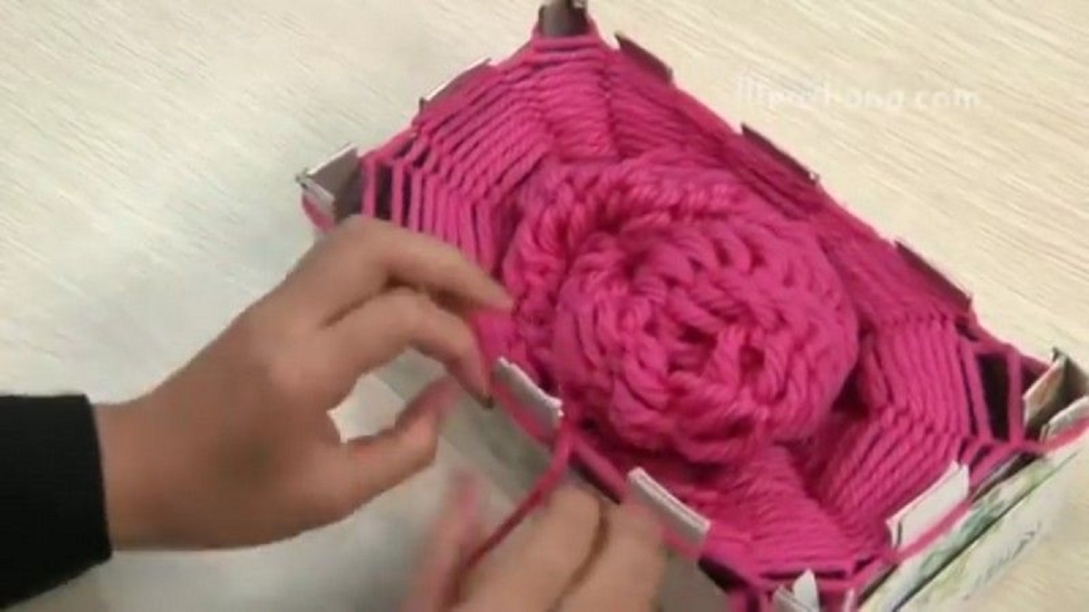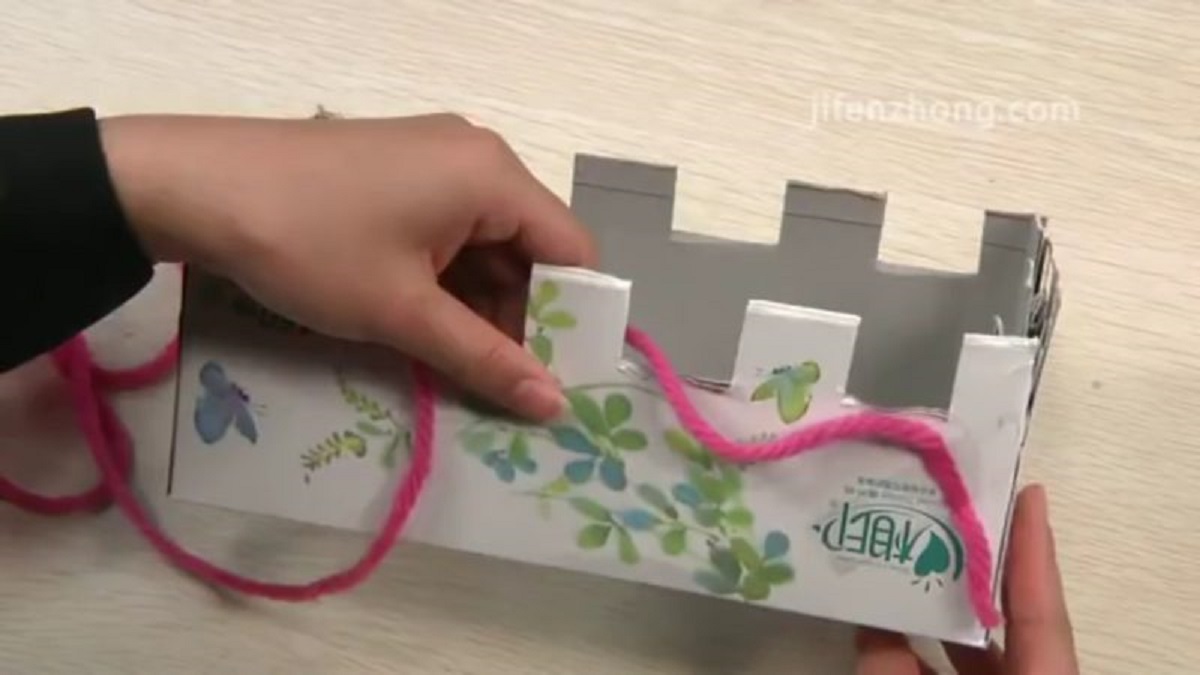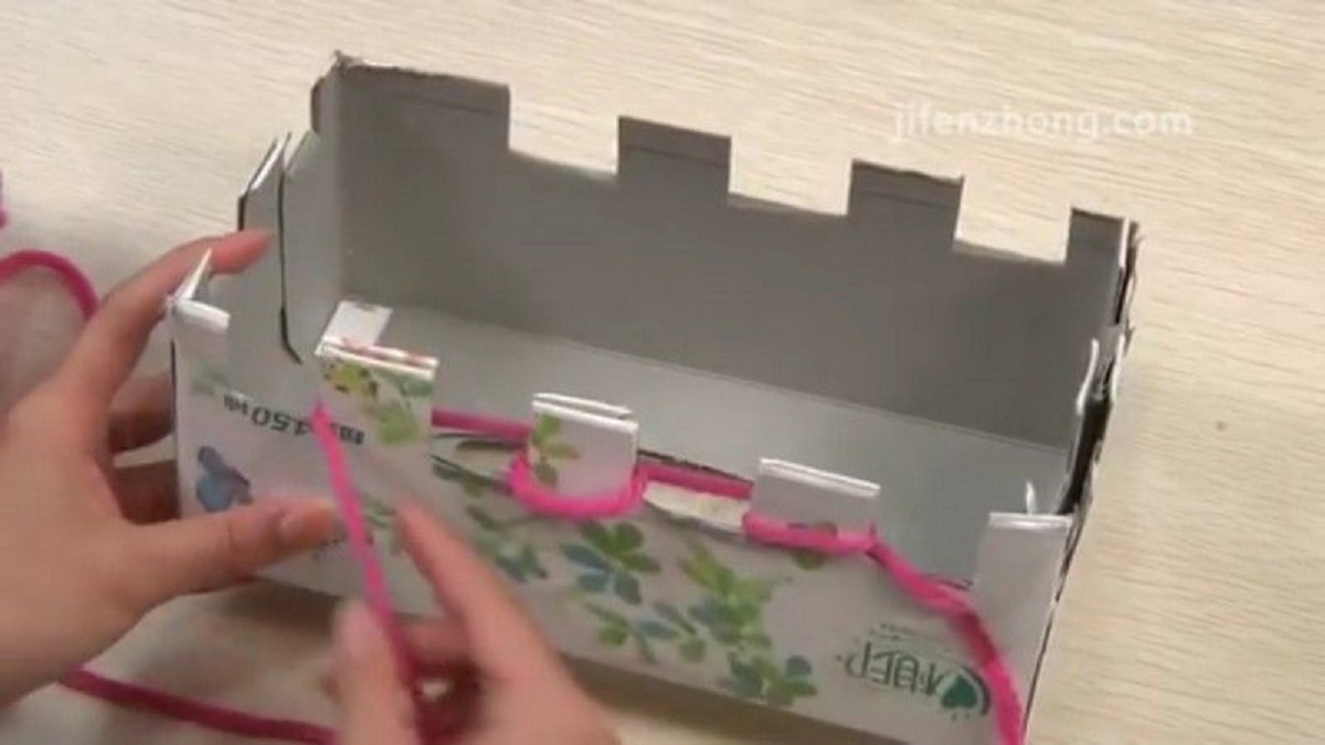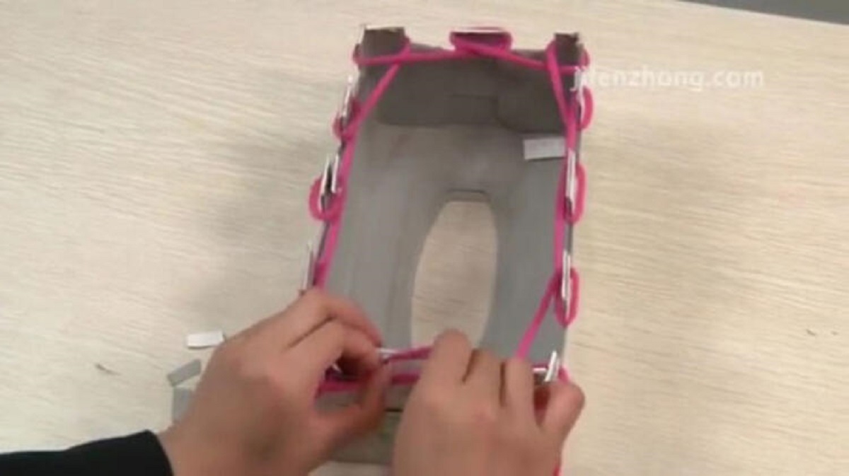 ولفّوا الصّوف حول كل سنّ مرورًا من داخل العلبتين حتى إتمام دورة كاملة.